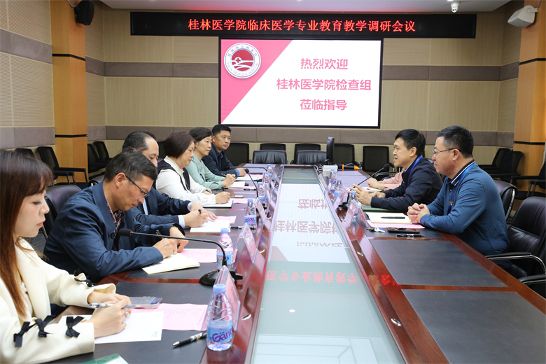 11月7日下午,桂林医学院党委副书记、院长曾小云率学校检查组一行6人,到桂林市人民医院开展临床医学专业教育教学调研指导。市人民医院党委书记王畅、副院长孙江滨陪同调研,教学管理科及各教研室主任参与座谈。