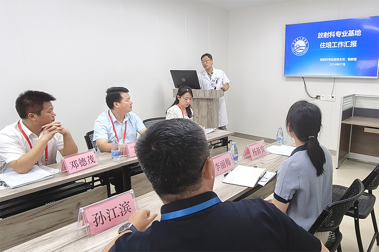 医院放射专业基地负责人、放射科主任杨新官博士从基地建设、培训管理、师资管理、培训质量、基地持续改进、工作亮点等六个方面向督导专家组进行了汇报。