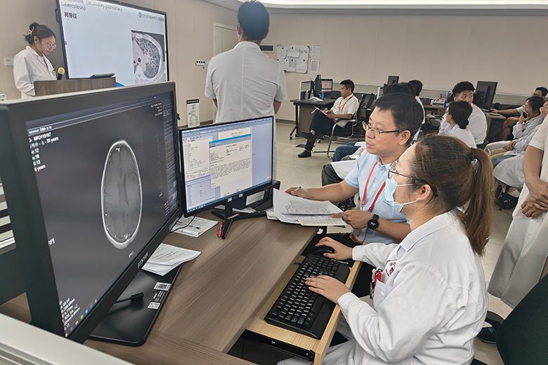 随后,专家组成员通过与放射基地主任沟通交流,检查教学阅片台账与现场抽查教学阅片,检查影像报告书写指导的台账,考核学员重建技能及对比剂不良反应识别及处理,访谈带教老师及住培学员,检查基地台账等形式,对放射专业基地进行了全面的评估、督导。