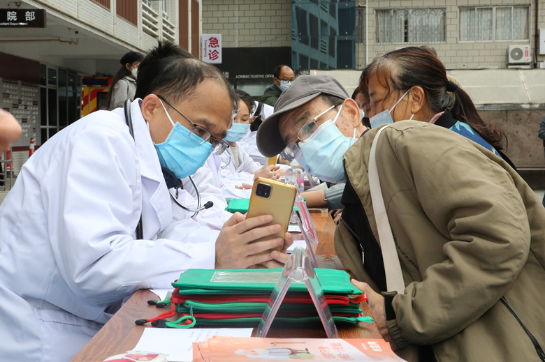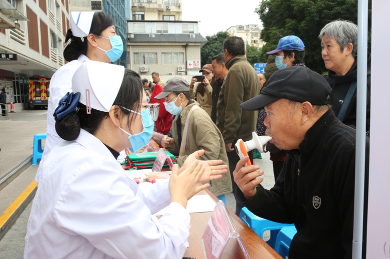 当天早上,呼吸与危重症医学科专家们来到医院门诊楼前开展慢阻肺的义诊活动,帮助大家更好地了解自己的肺功能状况。活动中,医护人员不仅向公众宣传了有关呼吸系统疾病的知识,还提供了免费的肺功能检查,以便大家能够更深入地了解自己的肺部健康状况。专家们耐心地解答了患者们关于慢阻肺的各种疑问,并现场对肺功能检查结果进行了详细解读,向大家普及了肺功能检查的重要性和必要性。
