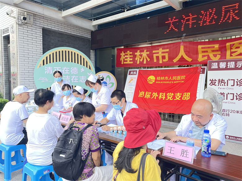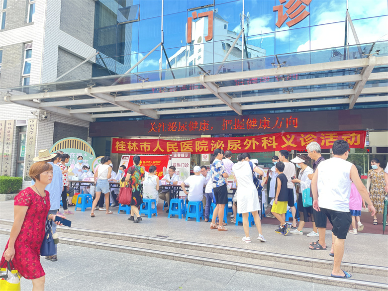 近日,桂林市人民医院泌尿外科在医院门诊小广场前开展义诊活动,此次义诊主题为“关注泌尿健康、把握健康方向”,通过免费诊疗、咨询等多种宣传形式,进一步唤起市民对泌尿系统各类疾病以及男性生殖健康的重视,注重相关疾病的防治。