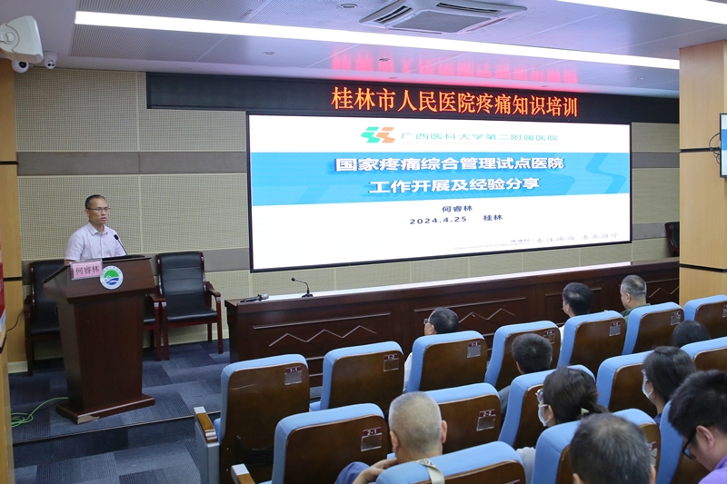 讲座在学术报告厅举行。院长秦科对二位专家的到来表示热烈的欢迎。他表示,两位教授在疼痛诊疗领域有着很深的造诣,在广西乃至国内有着较高的学术影响力,他们来医院为我们传经送宝,必将推动我院疼痛学科再上台阶。大家要珍惜这次难得的学习机会,对接先进的诊疗模式,提高疼痛管理水平,进一步提升专业能力和服务水平,更好地服务好桂林的百姓。