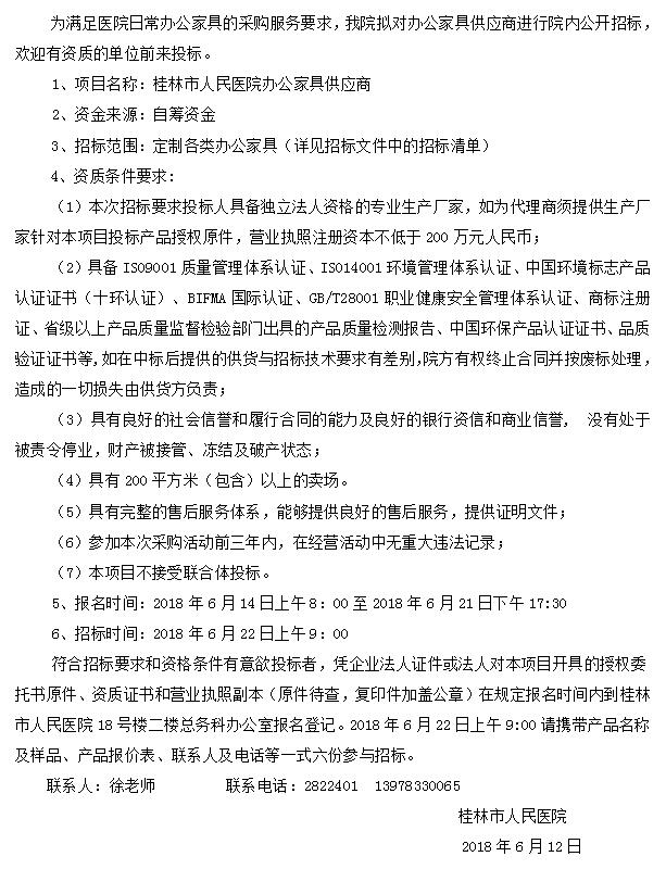 桂林市人民医院择优选聘办公家具供应商报名公告