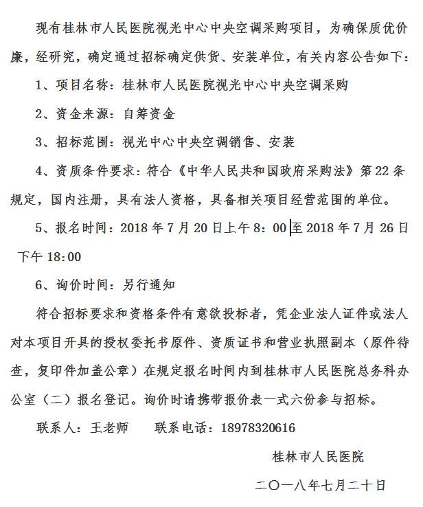 桂林市人民医院视光中心中央空调采购招标公告