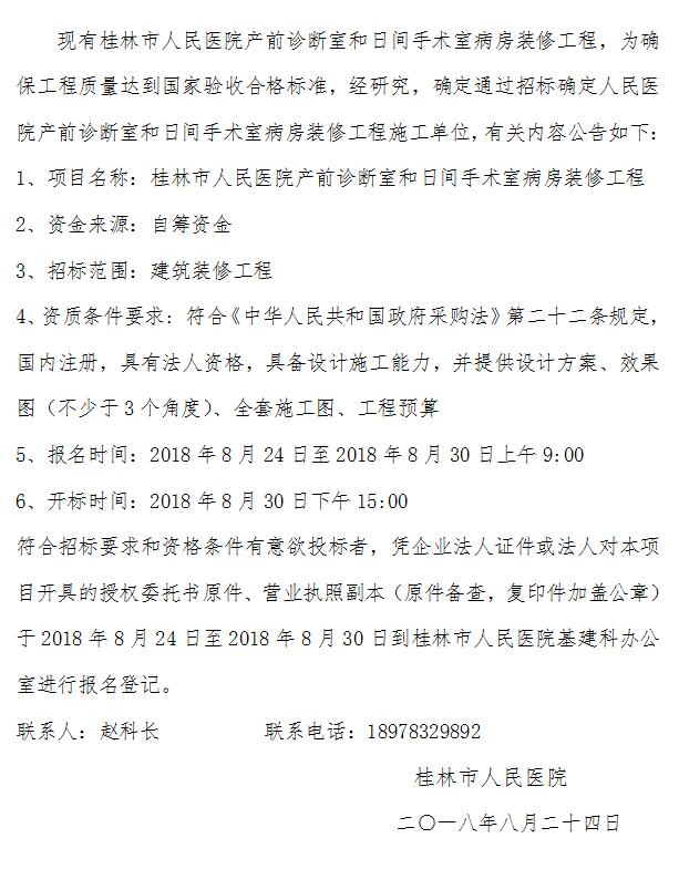 桂林市人民医院产前诊断室和日间手术室病房装修工程招标公告