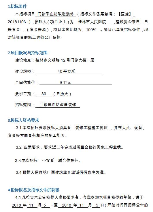 桂林市人民医院门诊采血站改造装修项目施工招标公告