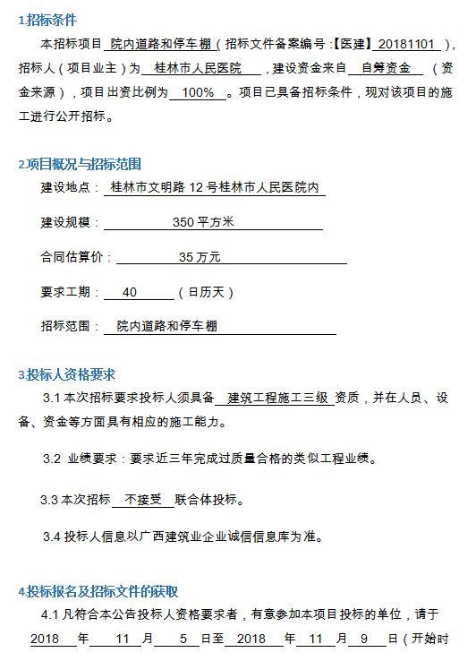 桂林市人民医院院内道路和停车棚新建项目施工招标公告