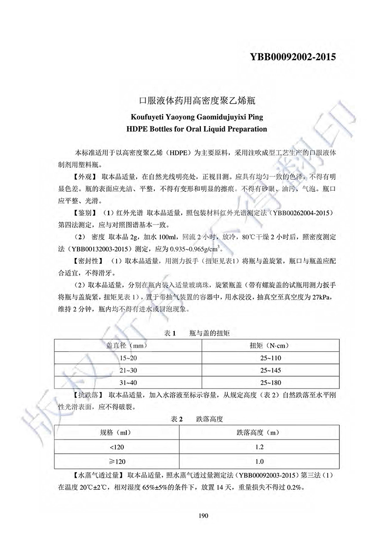 附件:口服液体药用高密度聚乙烯瓶相关规格参数