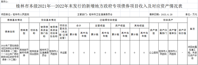 附件2: 桂林市本级2021年--2022年末发行的新增地方政府专项债券项目收入及对应资产情况表