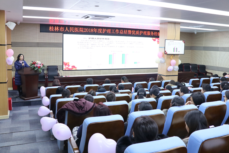 近日,桂林市人民医院护理部在学术报告厅召开2018年度护理工作年终总结暨优质护理服务经验交流大会,回顾了2018年护理工作取得的成绩,对2019年的工作进行了部署。