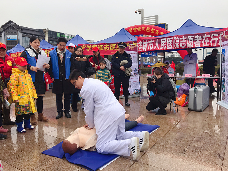 近日,桂林市人民医院组织志愿者来到市中心广场开展“学雷锋送健康”志愿服务活动,专家现场义诊、现场教学互救技能等多种形式,弘扬了雷锋精神,用实际行动培育和践行社会主义核心价值观。