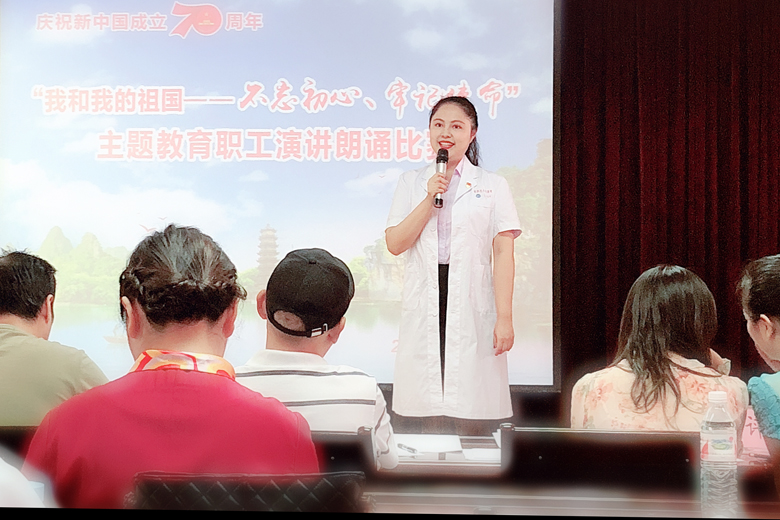 代表我院参赛的黄慰同志,演讲主题鲜明,语言生动,声情并茂,富有感染力。她饱含深情地讲述了发生在身边的感人故事,表达对党的忠诚,对祖国的热爱,对事业的的担当与奉献,展现了我院医务人员全心全意为患者服务,爱岗敬业、无私奉献的精神风貌。