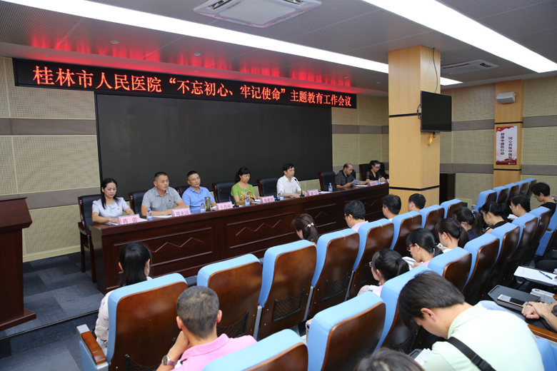 为深入学习贯彻习近平总书记重要讲话精神,按照市卫生健康委员会“不忘初心、牢记使命”主题教育工作部署,9月23日下午,桂林市人民医院在学术厅召开“不忘初心、牢记使命”主题教育工作会议。市卫健委第三巡回指导组组长蒋碨鸿、市人民医院党委书记谭宇出席会议并讲话,市人民医院党委副书记、院长王昌明主持会议。