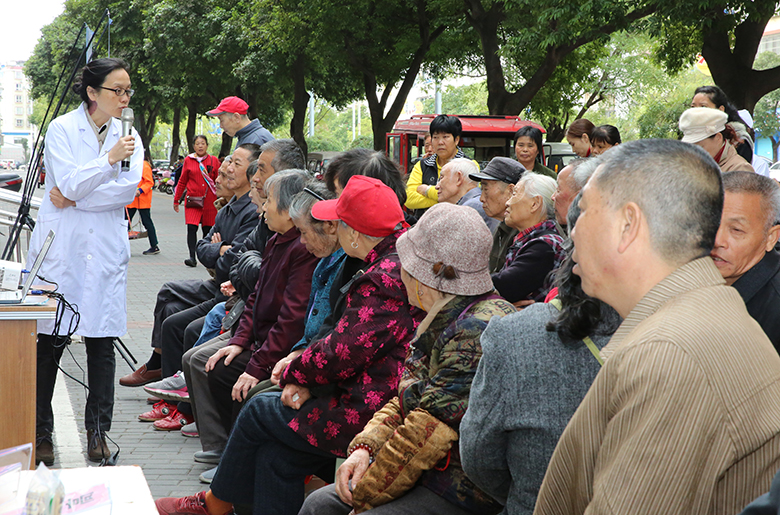 该院内分泌科主任黄萍在义诊前,特意安排了一个简短的小授课,以图说糖尿病的形式,让前来听课的中老年朋友们更容易接收到这些难懂的医学知识,“叔叔阿姨们,知道自己有糖尿病的请举个手我瞧瞧。”黄萍说,“呦,原来有这么多,我们握个手吧,今后我们就是朋友了!”这个开场一下让在场的群众跟她热络起来。