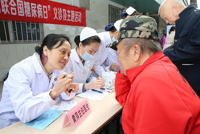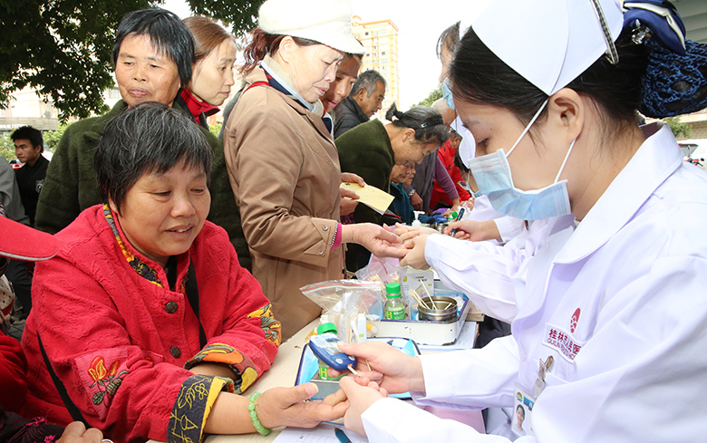 11月14日是第13个“联合国糖尿病日”,今年的宣传主题为“防控糖尿病、保护你的家庭”。当天上午,桂林市人民医院一群内分泌科的医务工作者,早早的就来到灵川县八里街三一〇医院门诊门口,授课、解惑、问诊、测血糖、量血压,一场“找朋友”的义诊活动好不热闹。