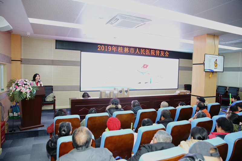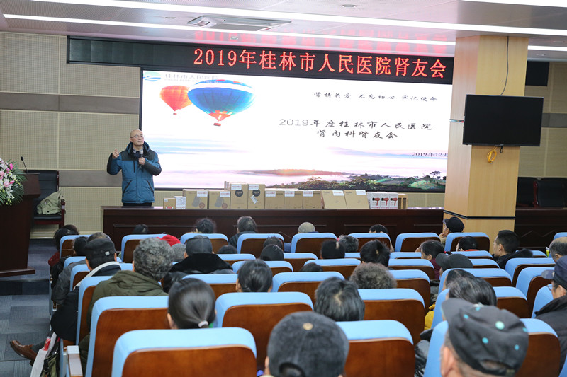 12月24日,在桂林市人民医院学术会议厅,成功举办了一场主题为“肾情关爱,不忘初心牢记使命”的肾友联谊会。活动由该院肾内科举办,用讲座、有奖问答、视频教学和现场演示等形式,向到场的一百余名肾病患者及家属普及了防治肾脏疾病的相关知识。