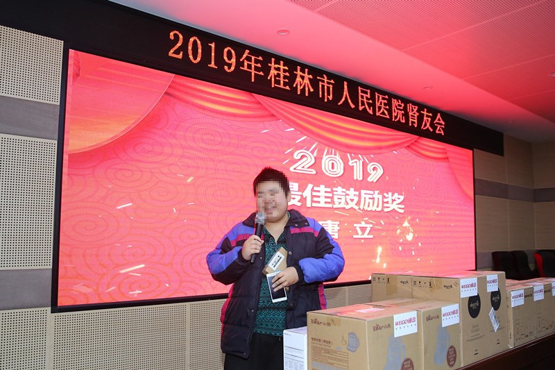 在颁奖环节,为鼓励肾友及家属对抗病魔的那一份坚定,根据大家长期的表现,科室评选出了“优质病号奖”、“最佳鼓励奖”、“最佳配合奖”等奖项。其中“最佳鼓励奖”获得者、年仅18岁的患者唐立作为患者代表发言,他用自己近3年的治疗经历,告诉大家要树立积极乐观的心态,去面对疾病和生活,赢得了大家的阵阵掌声。