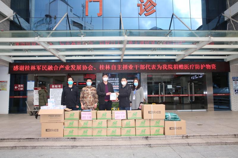 桂林军民融合产业发展协会前来捐赠的负责人说:“我们退役军人为奋斗在一线的医护人员尽绵薄之力,让他们安心、放心地投入这场疫情防控战。”
