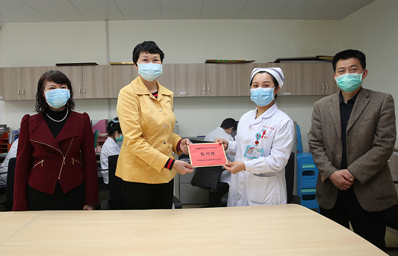 2月28日上午,桂林市卫健委党组书记王芳一行来到市人民医院,对23名赴湖北一线抗击疫情医疗队员的家属进行慰问。市卫健委党组成员涂绪凤、四级调研员秦伶军,市人民医院党委书记谭宇陪同慰问。