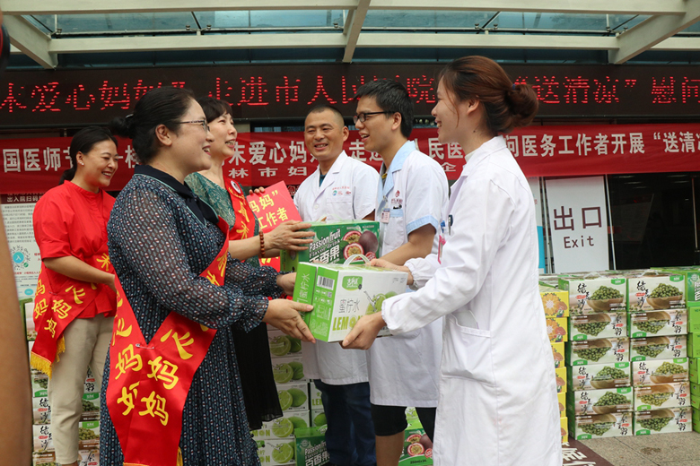 8月19日是中国医师节,当天下午,市妇联、市女企业家协会、“周末爱心妈妈”志愿服务队一行来到市人民医院,给一线医务人员送来清凉饮料,向广大医务工作者致以节日的问候。