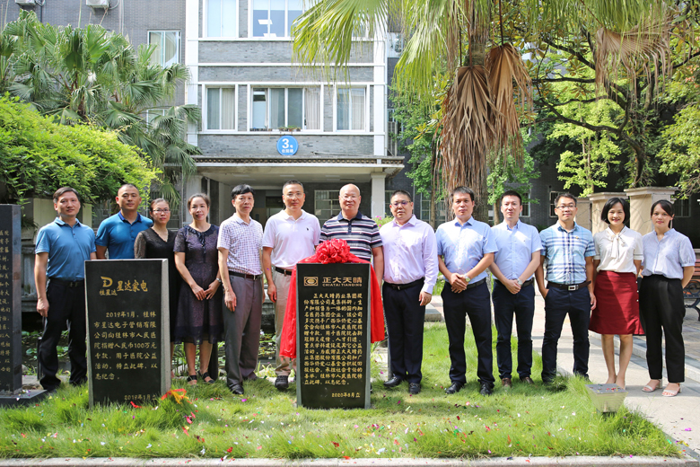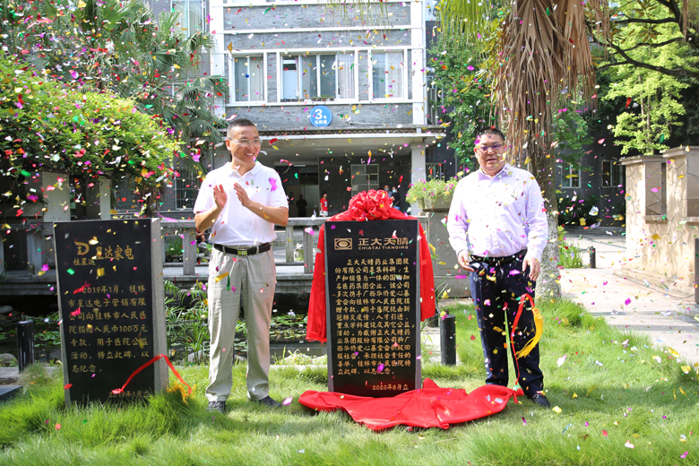 8月19日正值中国医师节,当天上午,桂林市人民医院在爱心园举办了简单而热烈的捐赠揭牌仪式。为从2017年开始,携手广西华侨爱心基金会,先后四次向医院捐赠爱心基金共计100万元的正大天晴集团在医院爱心园立碑揭牌,以志受益人最诚挚的感谢。