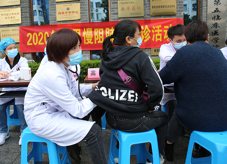 11月18日是第19个世界慢阻肺日,今年的主题是“防控慢阻肺,你我携手行”。什么是慢阻肺?如何能早期发现?能治愈吗?当天上午,桂林市人民医院呼吸与危重症医学科的专家们来到门诊楼前义诊,加深大家对慢阻肺的认识,提高患者对慢阻肺防治的重视度。
