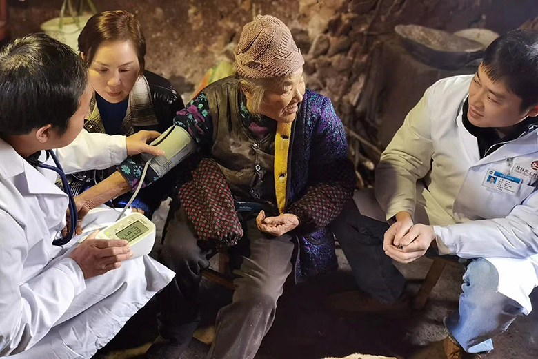 “见到你们真高兴,谢谢您们的到来。”在贫困老人秦昌秀家中,队员们亲切地和老人拉起家常,家里有几口人,今年收入怎么样等,老人患有肢体四级残疾,队员们对其进行了身体检查的同时还叮嘱老人日常需要注意的事项。