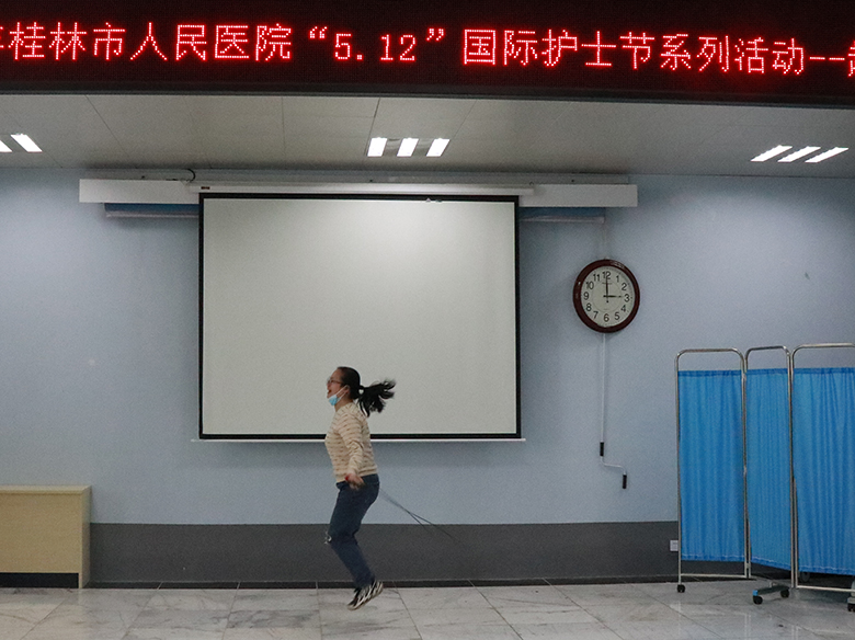 在5.12护士节即将到来之际,为了让广大护理人员在繁忙的临床工作中也能够欢度自己的节日,4月28日下午,桂林市人民医院护理部在临床能力训练中心举办了一场以“我运动、我健康、我快乐”为主题的轻松趣味活动,丰富护士们的业余生活,构建和谐团体,展示新时期护理人员友谊、运动与比赛的风采。