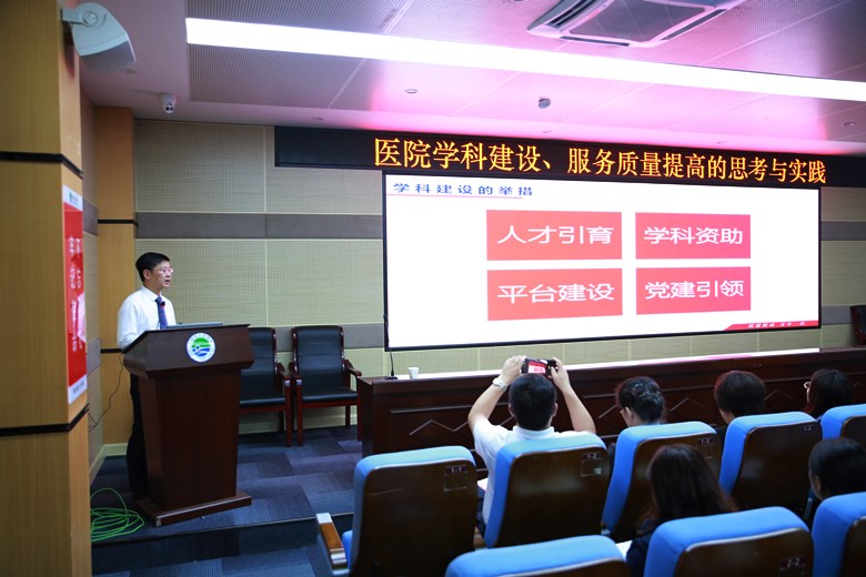 新形势需要新担当,新征程呼唤新作为。5月24日,我院邀请国内知名医院管理专家、温州医科大学附属第一医院党委书记、复旦大学附属中山医院肝肿瘤内科主任医师、博士生导师夏景林教授到医院做学科建设专题讲座。各临床医技科室主任、副主任、教学秘书共100余人聆听了本次讲座,教科部主任杨帆博士主持。
