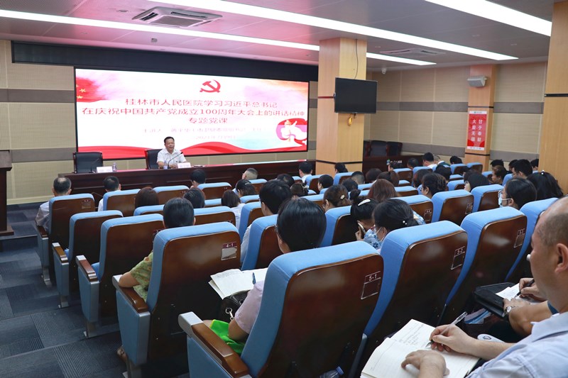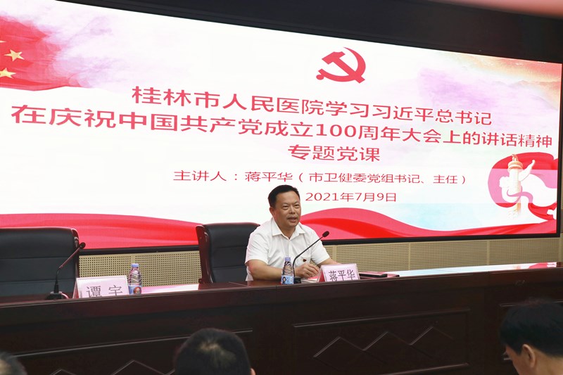 为进一步强化党员意识,深入开展党史学习教育,根据桂林市卫健委及桂林市人民医院党史学习教育安排,7月9日下午,市人民医院特邀市卫生健康委党组书记、主任蒋平华来院,为党员们上了一堂生动的专题党课。