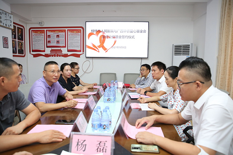 9月8日上午,广西华侨爱心基金会在桂林市人民医院举行捐赠仪式,基金会向医院捐赠医学公益基金30万元。双方还将在提升医院医疗服务水平、贫困患者救治等公益活动方面继续加强合作,造福于社会弱势群体,共同推动医疗卫生事业的发展。
