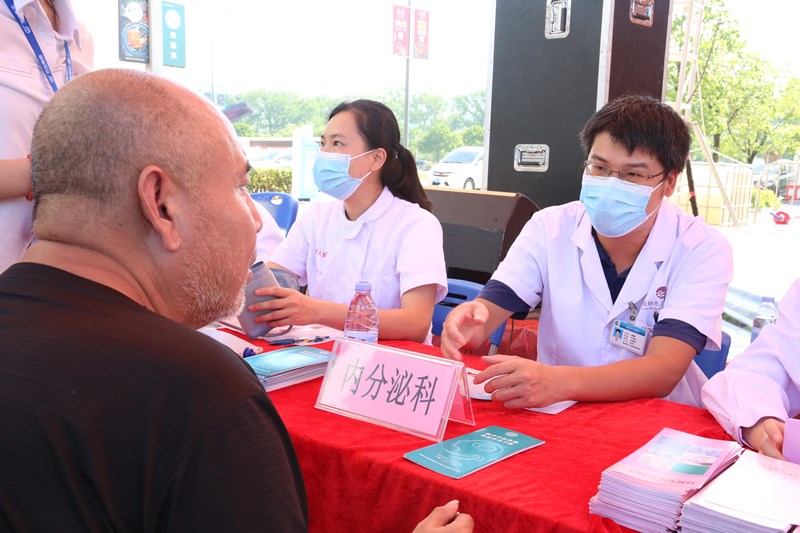 上午9点,义诊开始。活动现场,前来咨询就诊的市民络绎不绝,专家、医护人员热情为大家答疑解惑。来自心血管内科、神经内科、普通外科、消化内科、内分泌科、呼吸及危重症医学科、妇科/计划生育科、关节骨科/创伤外科、泌尿外科及药学部9个专科和1个医技部门的12名专家,通过诊疗、测血压、测血糖、指导用药和发放健康教育宣传资料,为前来义诊的市民提供了优质的诊疗和咨询服务。