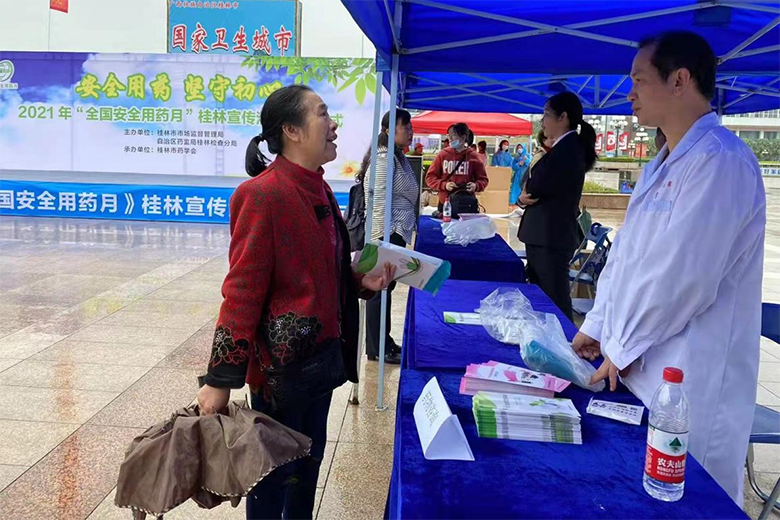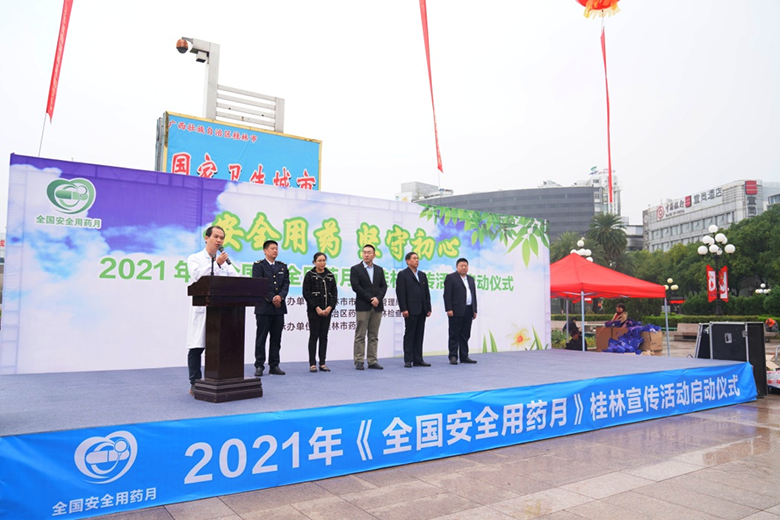 11月12日,由桂林市市场监督管理局主办的以“安全用药,坚守初心”为主题的全国安全用药月活动在中心广场正式启动,以提升公众药品安全科学素养,使人民群众的获得感、幸福感、安全感,更加充实、更有保障、更可持续。作为药师代表,药学部覃东副主任在启动仪式发出《致药师的安全用药倡议书》,号召广大药师积极、主动地提供更专业、更全面、高质量药学服务,助力健康中国事业的发展。