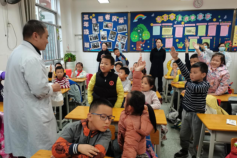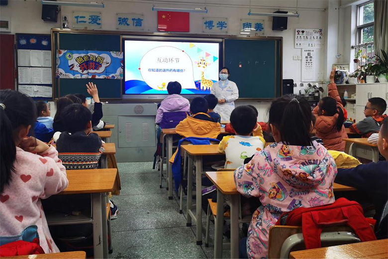 儿科邓坤副主任医师对同学们进行儿童健康教育,以图文并茂的课件,生动活泼的讲解,告诉同学们怎样识别常见的疾病,如感冒发烧的常见症状。嘱咐孩子们平时应劳逸结合,注重加强体育锻炼、增强体质,如果生病后如何康复或积极治疗。活动现场同学们认真学习、积极互动,学习氛围浓厚。收到良好的宣传效果。