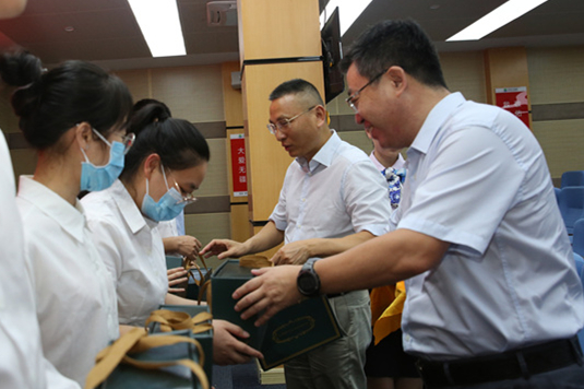 最后,由王昌明院长和孙江滨副院长代表医院为结业学员代表们赠送结业纪念品,寓意他们未来皆可期。