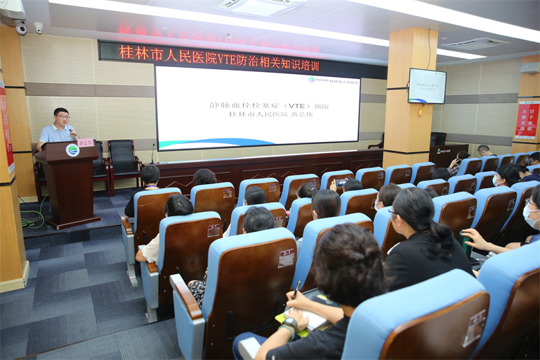 为规范院内静脉血栓栓塞症(VTE)防治,有效开展VTE预防管理,提高医院整体VTE防治服务水平,6月30日下午,桂林市人民医院在学术报告厅举办VTE防治相关知识培训,高危科室相关科主任、护士长及业务骨干参加。