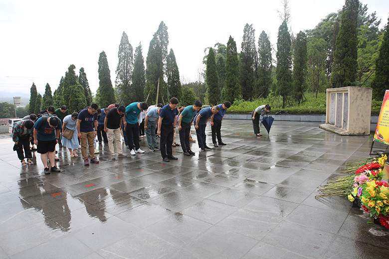 巍巍青山埋忠骨,苍松翠柏慰英魂。兴安县界首镇城东村委光华铺阻击战战场遗址现场安静肃穆,怀着对革命先烈的深切缅怀,参加活动的党员在红军烈士墓前庄严肃立,鞠躬致敬,并依次围绕烈士墓瞻仰。