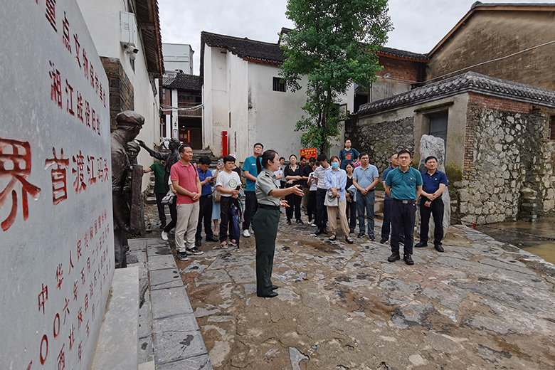 在界首渡口,全体党员在红军堂内回顾湘江战役中革命先辈艰苦卓绝、浴血奋战的峥嵘岁月,并沿着界首老街,重走长征路,重温红军长征“足迹”,感受长征精神的深刻内涵。