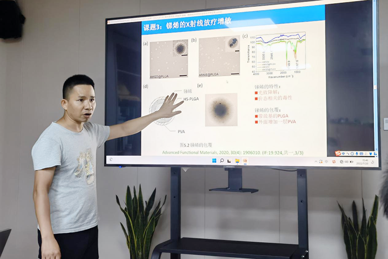 农工党员梁维源博士详细讲解①磷烯、锑烯纳米材料的生物光子学应用,②水凝胶智能NIR光控释放系统,③锑烯的X射线放疗增敏,④锑烯的SPR信号增强作用及miRNA传感方案四个方面做了详细讲解。