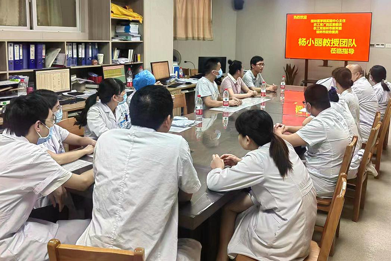 为提高临床医务人员科研能力水平,促进科研与临床的有机结合和共同发展,7月20日下午,农工党广西区委委员、农工党桂林市委常委、桂林医学院科学实验中心主任、博士生导师杨小丽教授团队受邀来到桂林市人民医院肿瘤科/放射治疗科,为该科医务工作者开展临床科研进行讲解与指导。