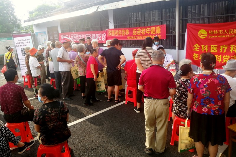 7月25日至31日为全国老年健康宣传周活动。为宣传普及老年健康政策和科学知识,切实帮助老年人提高健康素养和健康水平,桂林市人民医院围绕今年老年健康宣传周“改善老年营养,促进老年健康”的主题,于近日开展了讲座、义诊等系列活动,积极推进老年健康宣传周活动的开展。