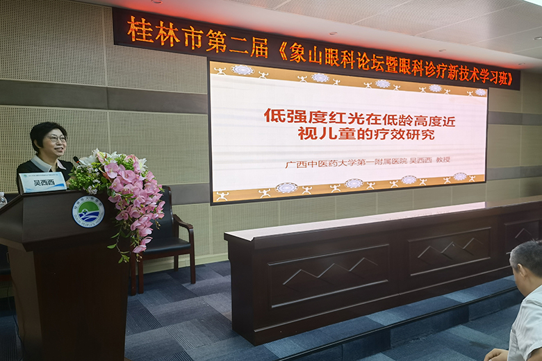 本次大会采取线上+线下参会的形式,邀请了中山大学中山眼科中心林小铭教授、广西中医药大学第一附属医院吴西西副院长、广西医科大学晶亮眼科医院谭少健院长、广西医科大学第一附属医院黄敏丽教授、南宁爱尔眼科医院曾思明院长、桂林市第二人民医院温利辉副院长、柳州市人民医院万小波教授、广西医科大学晶亮眼科医院胡秋明教授、桂林医学院第二附属医院秦程教授等多名广西区内外知名眼科专家及我院眼科主任张玉明教授、钟旭医师和林静护士长进行专题授课。
