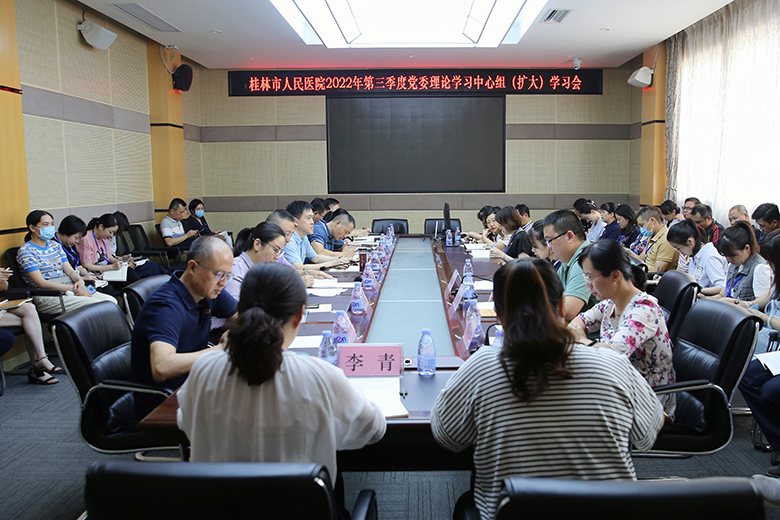 9月21日下午,桂林市人民医院召开党委理论学习中心组(扩大)学习会议,专题学习近期主流媒体推出的“领航中国”专栏,深化认识中国共产党在中华民族伟大复兴的征程中初心使命,深刻领悟“两个确立”的重要意义,增强“四个意识”,坚定“四个自信”,做到“两个维护”,以医院高质量发展的成果迎接党的二十大胜利召开。