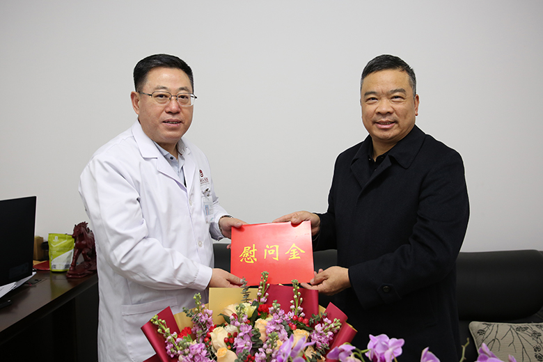 2月6日下午,市政协副主席文建中来到市人民医院,慰问该院党委委员、副院长孙江滨,向他送上党和政府的关怀及新春的祝福。
