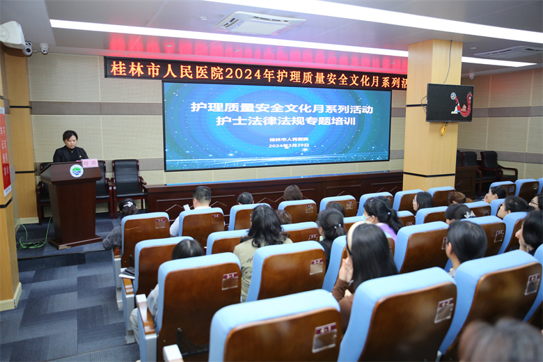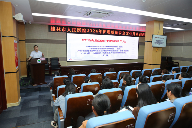 为深化护理质量安全文化月系列活动内涵,加强法治教育,提高护士法律意识,牢固树立依法依规执业的理念,保障患者安全,3月29日下午,桂林市人民医院护理部特邀广州市第一人民医院投诉管理科科长于宏到院,进行法律风险专题讲座。137名医护人员参加本次学习。
