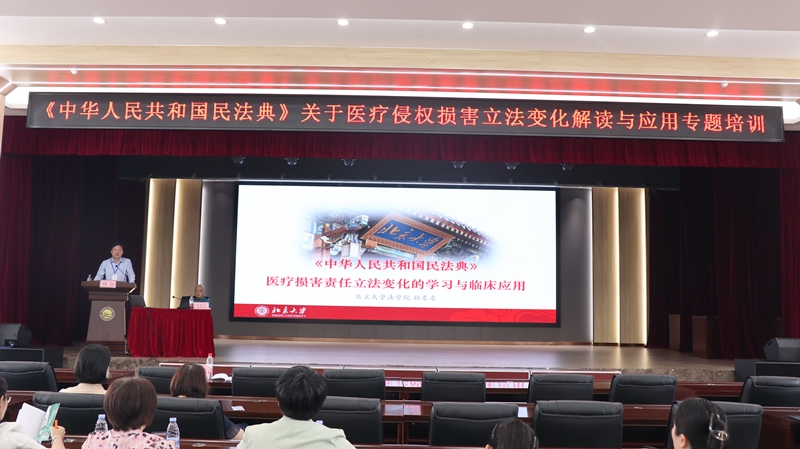 为规范医务人员职业操守和行为准则,提升法律意识和人文服务质量,4月23日,桂林市人民医院特邀北京大学法学院教授、北京大学卫生法学研究中心原主任孙东东教授,为全院职工进行《中华人民共和国民法典》关于医疗侵权损害立法变化解读与应用专题培训。全院各临床医技科室医护人员、行政职能科室人员共计300余人现场聆听讲座。专题讲座由副院长杨磊主持。
