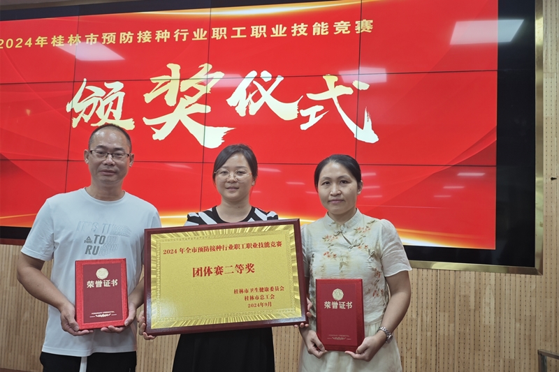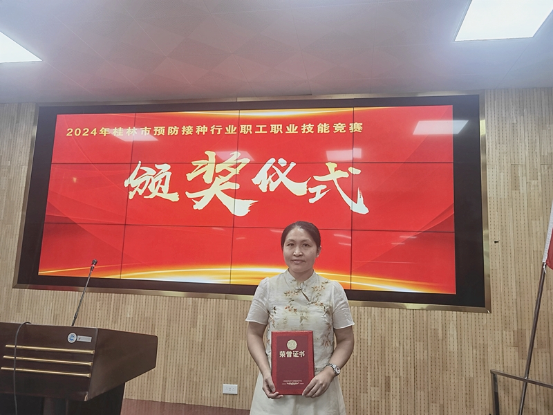 近日,由桂林市卫生健康委、桂林市总工会联合主办的2024 年全市预防接种行业职业职工技能竞赛圆满落幕。我院象山社区卫生服务中心许小燕表现出色,荣获个人赛全场唯一的一等奖,代表象山区参赛,荣获团体赛二等奖。