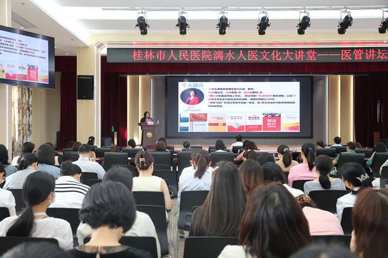 11月15日下午,桂林市人民医院举办漓水人医文化大讲堂——医管讲坛,聚焦精益医疗,内容涵盖精益医疗的基本原理、实施步骤、成功案例分享等方面。院长秦科为本次讲坛致辞,副院长孙江滨、杨磊以及医院中层、后备力量、科室骨干二百余人参加。