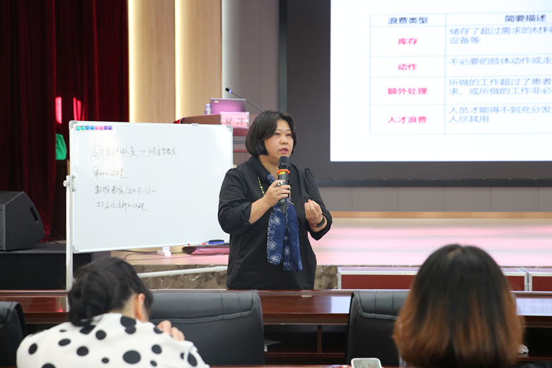 夏萍教授以其丰富的实践经验为基础,生动形象地介绍了精益医疗的核心概念及其应用技巧,并实时与场下互动,形成小组式讨论,共同探讨医院管理中遇到难点和困难。最后,她通过具体事例展示如何有效地运用这些理论解决实际问题。