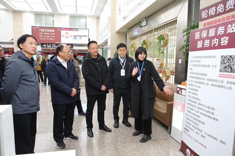 12月12日,国家医保局交叉调研组组长饶永虎一行来到桂林市人民医院,就推进按病组(DRG)付费2.0版分组方案的落地实施进行深入调研。广西壮族自治区医保局党组成员、副局长赖永东,桂林市医保局党组成员、副局长陆小春以及医院领导班子参加活动。